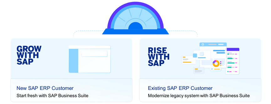 Together, RISE and GROW cover both market segments – installed-base customers seeking transformation and new customers seeking a fast, clean-core start.